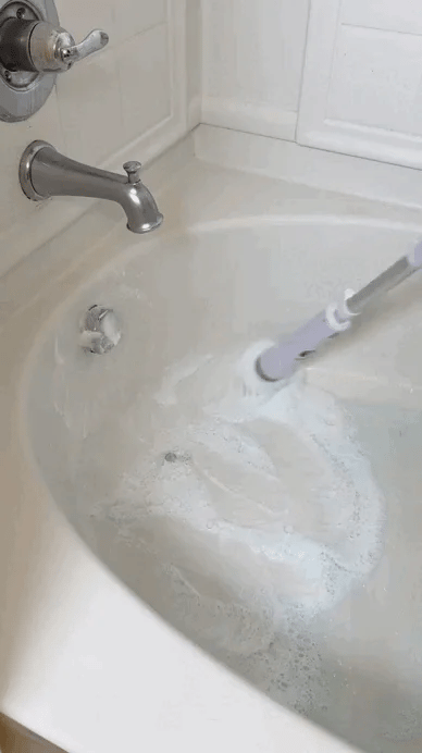 With powerful rotating bristles and an extendable handle, it scrubs away dirt, soap scum, and grime—so you don’t have to.