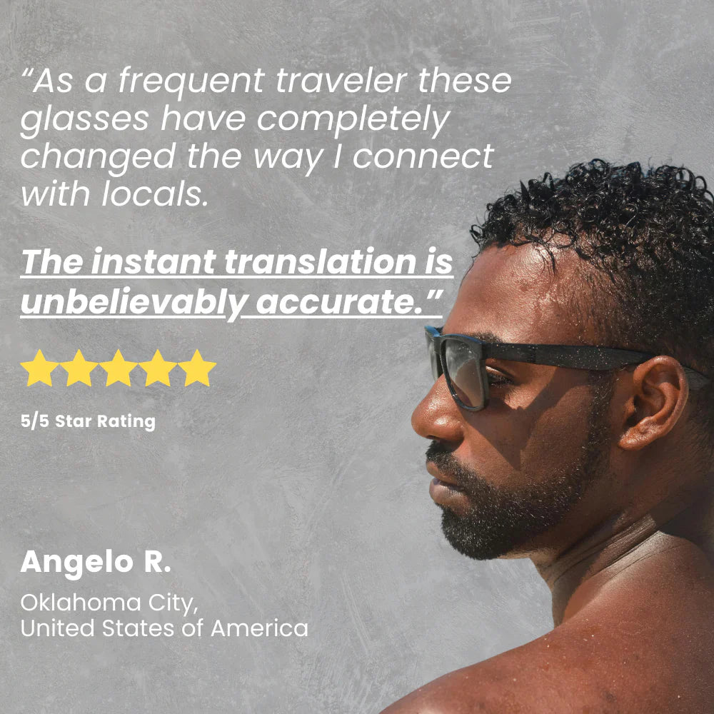 "I took these on a solo trip through Europe, and they seriously made everything so much easier. From ordering food in Italy to asking for directions in Prague, the glasses picked up and translated super fast. People were impressed, and I didn’t feel like a clueless tourist. Comfortable to wear all day too!"