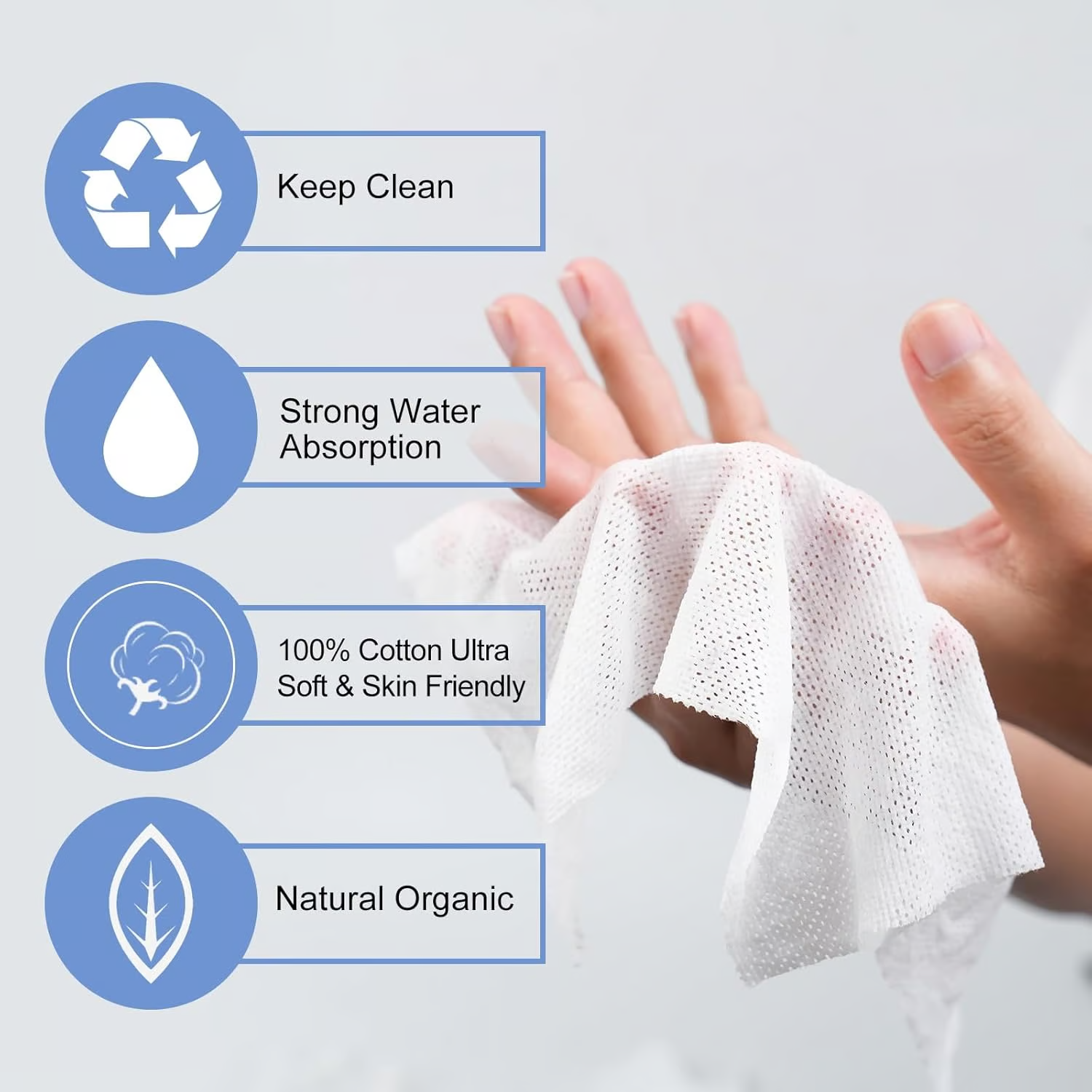 Made from 100% pure cotton, they’re soft, sterile, and gentle on all skin types—perfect for face washing, makeup removal, or freshening up after a workout or meal.