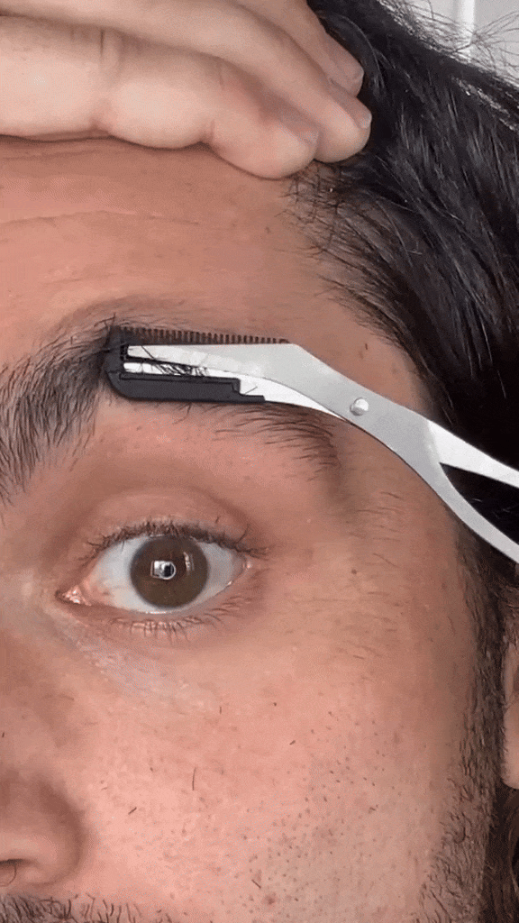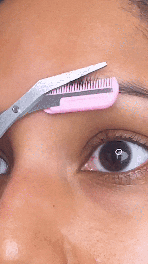 Gently trim in small sections, following the natural shape of your brows for a clean, precise cut.