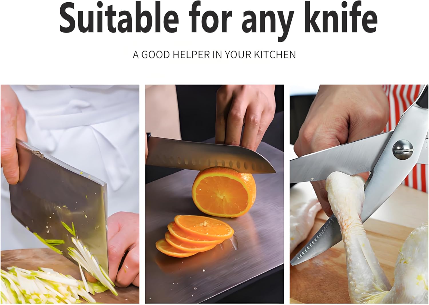 Made with a durable tungsten steel grindstone, it provides precise sharpening for various kitchen knives.