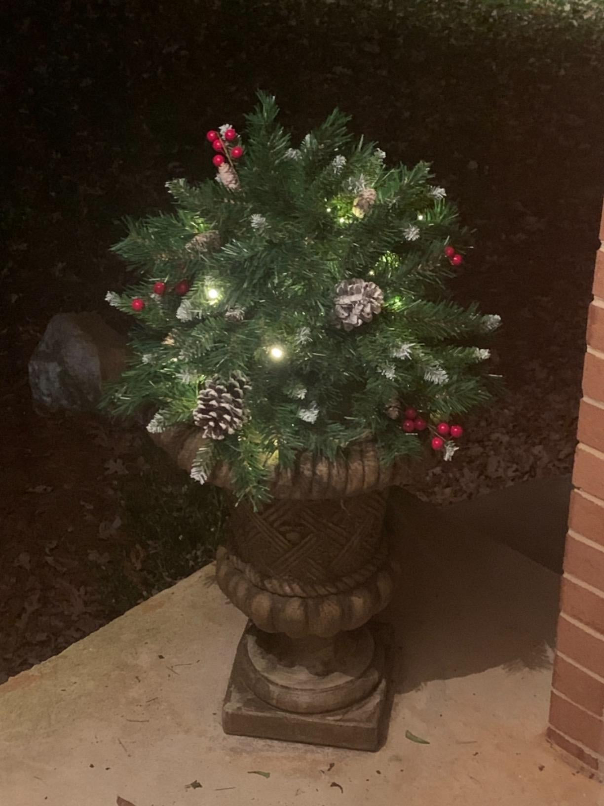 - Pre-lit Artificial Christmas Tree Urn Filler (approx. 2–3 ft tall)